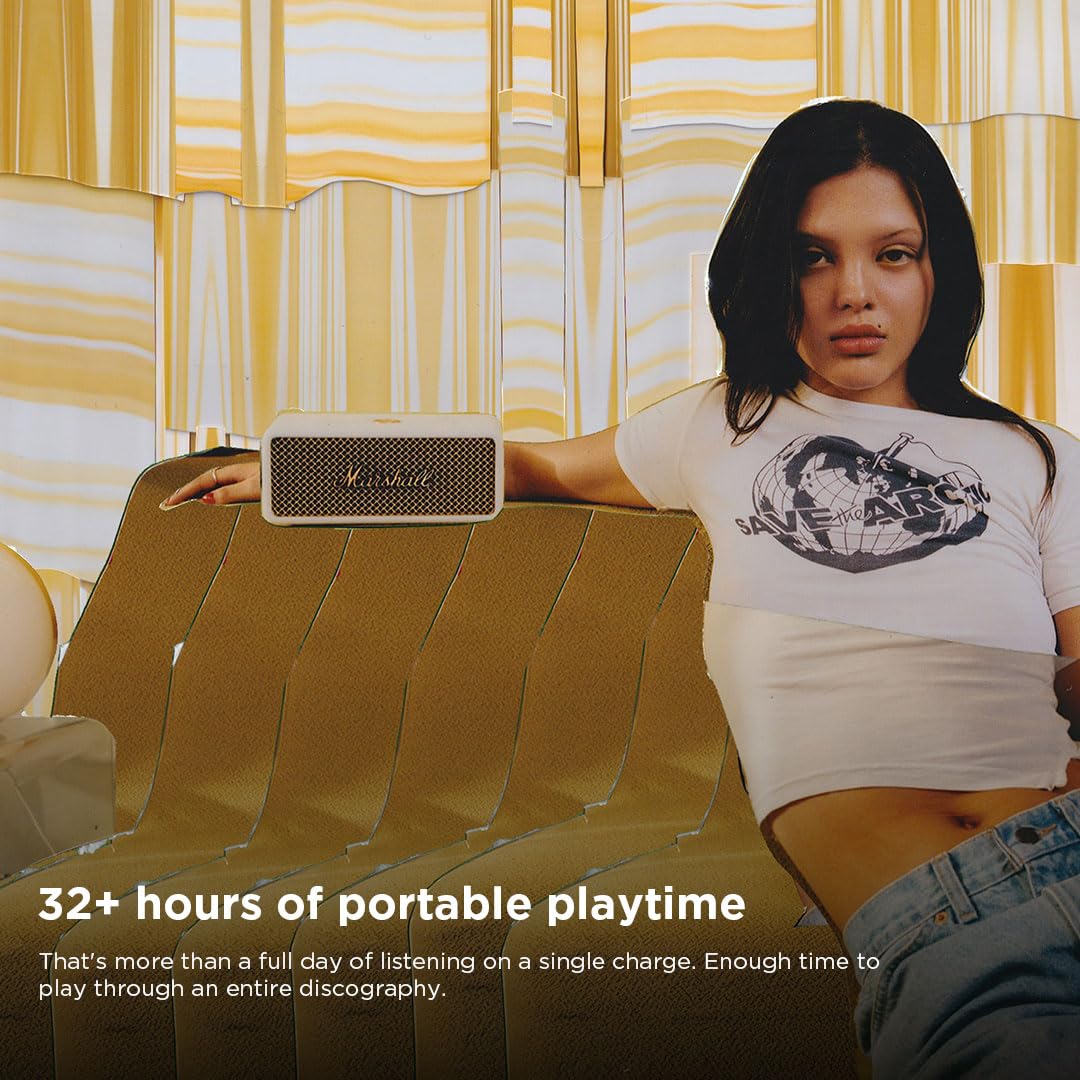 ICONIC MARSHALL STYLE: Features the signature Marshall logo, vintage-inspired cream vinyl finish, and metal grille for a timeless, premium look.