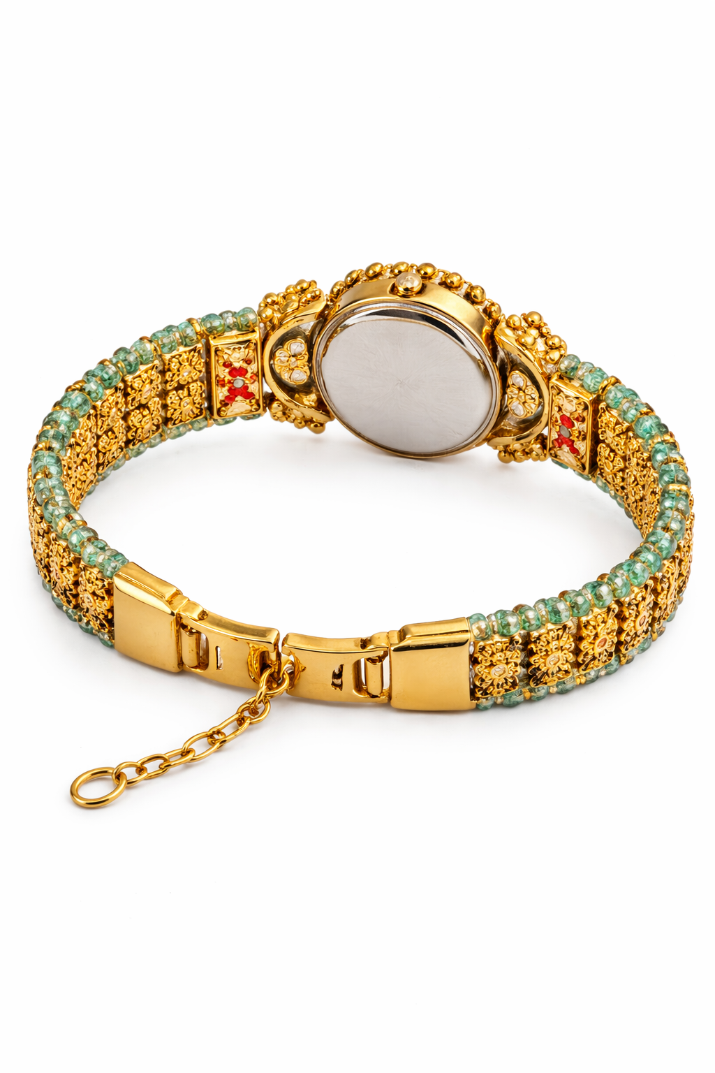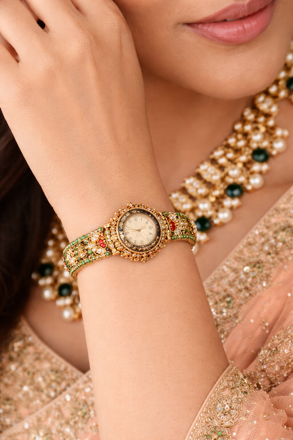 Perfect for weddings, festive occasions, parties, and ethnic outfits, this watch enhances your overall look with a royal and timeless appeal. Whether paired with a saree, lehenga, or traditional dress, this watch acts as both a fashion accessory and a functional timepiece.