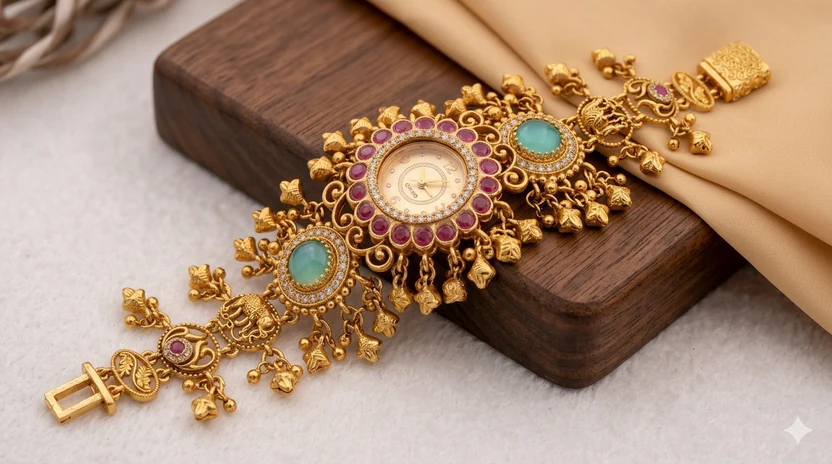 This watch pairs perfectly with bridal dresses, lehenga, saree, and traditional attire, making it an excellent choice for brides, wedding functions, and special celebrations.
