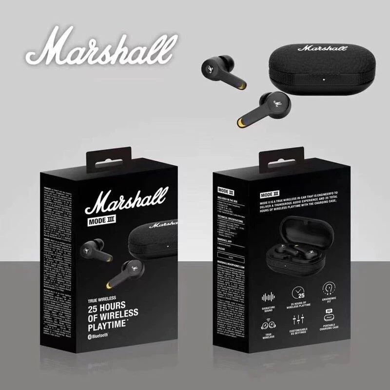 Experience pure, powerful sound with zero distractions using the Marshall Mode III True Wireless Earbuds. Designed for those who want legendary audio quality without complications, these earbuds deliver Marshall’s iconic rich bass, crisp mids, and clear highs.