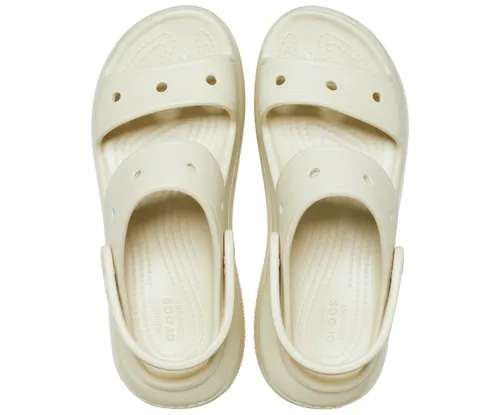 The look and feel of our Classic Mega Crush Clog is now available in sandal form. Introducing the Classic Mega Crush Sandal, featuring an enhanced rubber tread, updated detailing around the outsole and a platform ready to take any outfit to the next level. A two-strap upper and secure backstrap help ensure a secure fit, while boasting holes for personalization with Jibbitz™ charms. Are you ready for your new crush?