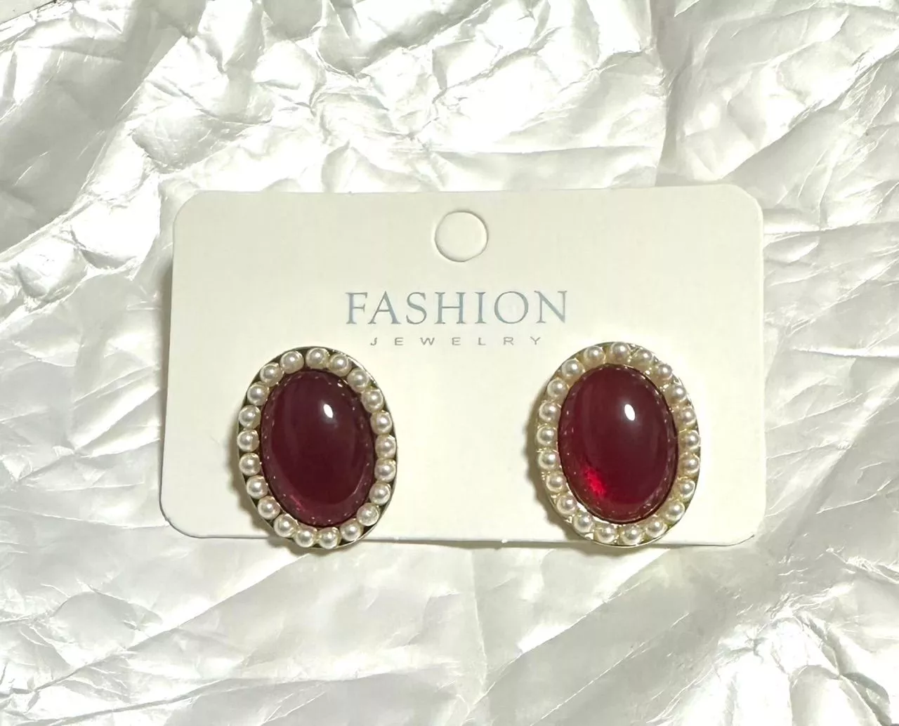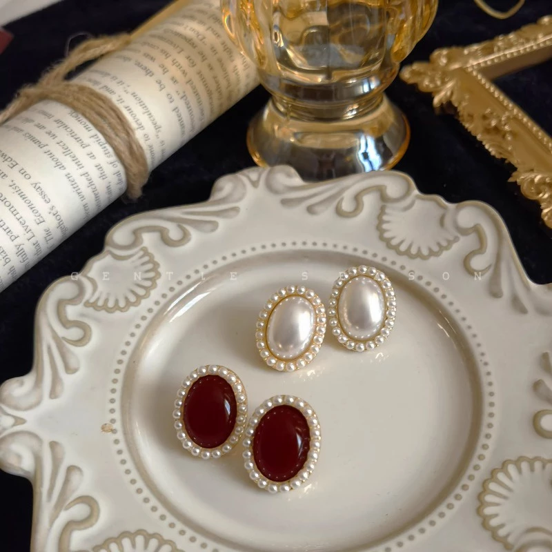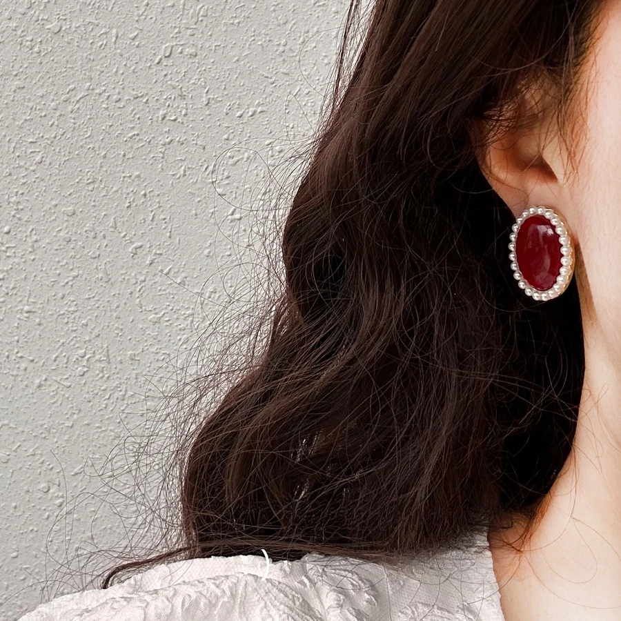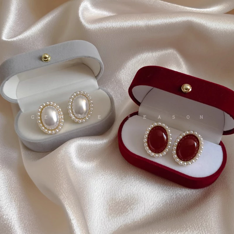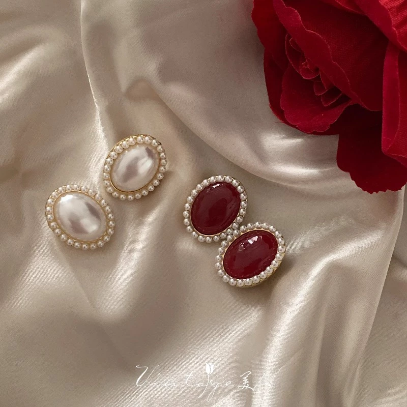 • Combo: 2 Pairs (Pearl White Oval Studs + Red Oval Studs)